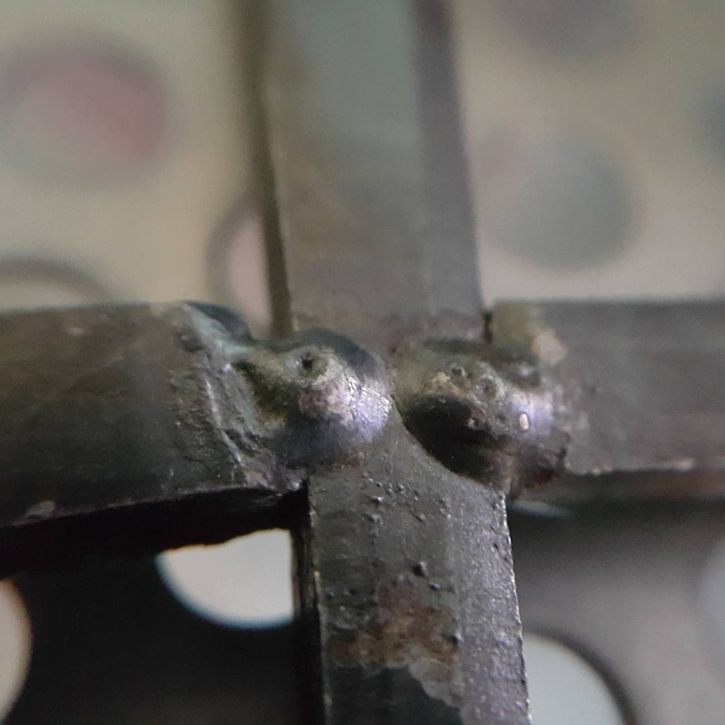 Cut Clasp nails. This consists of a series of small crosses, one nail cut in half, 2 nails welded together (tip over lapping tip), the nail cut in half is then welded to the other two, forming a small cross. These small crosses are then welded together forming the large cross of nails. This has been exhibited at Cockington Court, Devon, and Altered State Sculpture Exhibition, at Shaw House, Newbury.